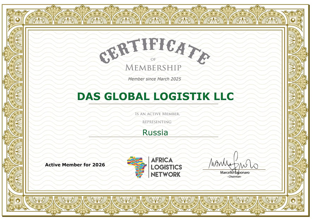 - Сертификат, подтверждающий членство в Africa Logistics Network (ALN) на 2026 год.